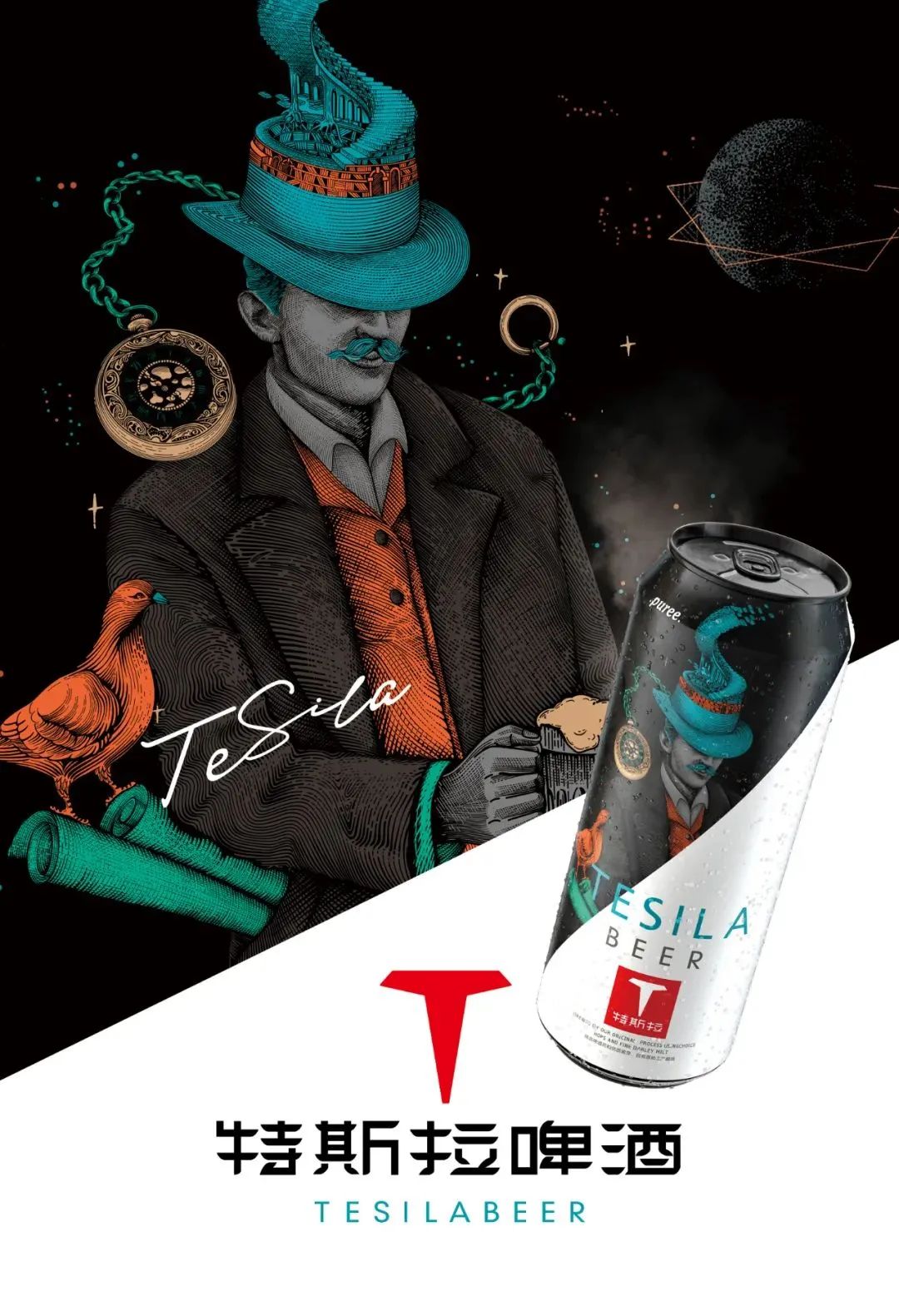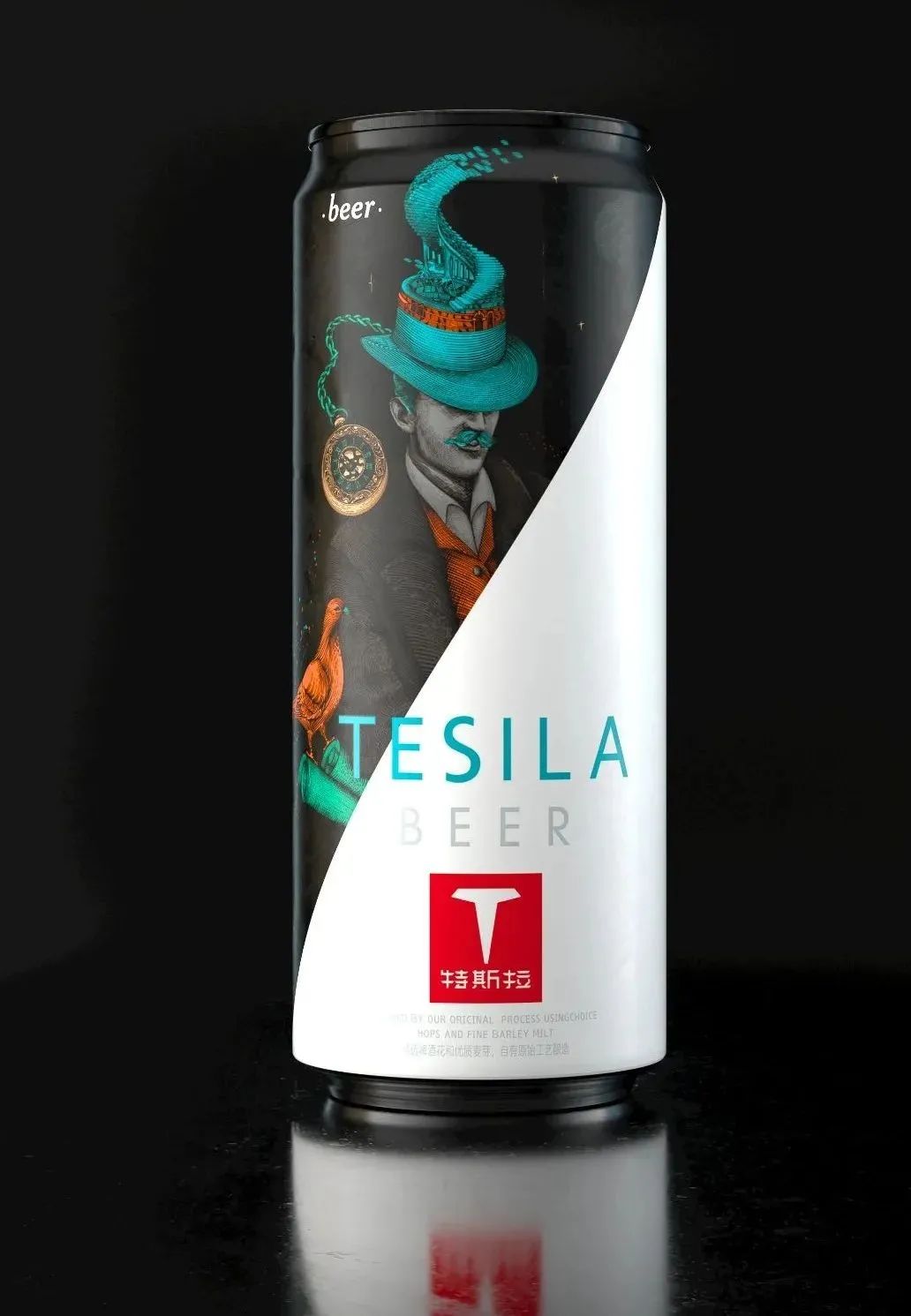 我們注意到,特斯拉啤酒去年還設(shè)計(jì)了一款新包裝。在創(chuàng)作過程還借助科學(xué)家“特斯拉”為視覺原型再創(chuàng)作,以此轉(zhuǎn)化為品牌專屬視覺,暗示靈感來自科學(xué)家“特斯拉”。