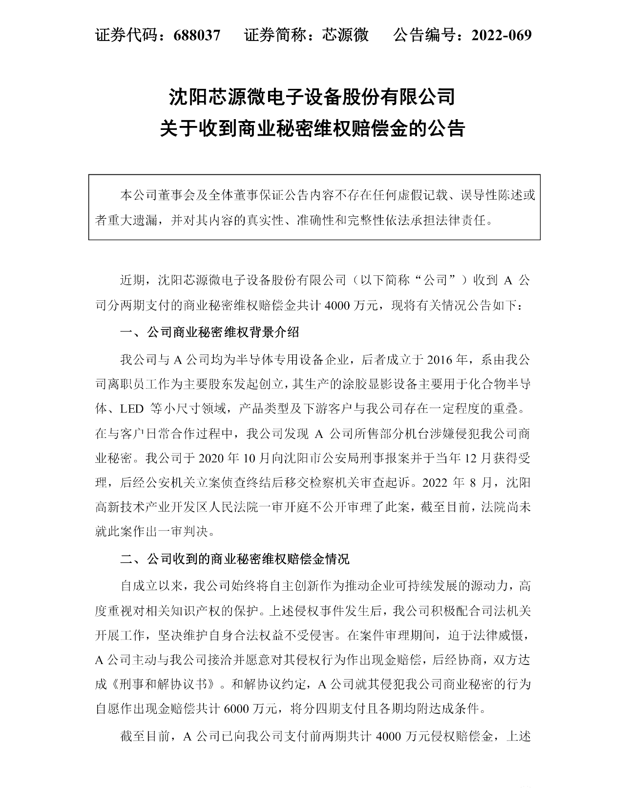 芯源微員工離職創(chuàng)業(yè),侵犯公司商業(yè)秘密賠償6000萬(wàn)和解