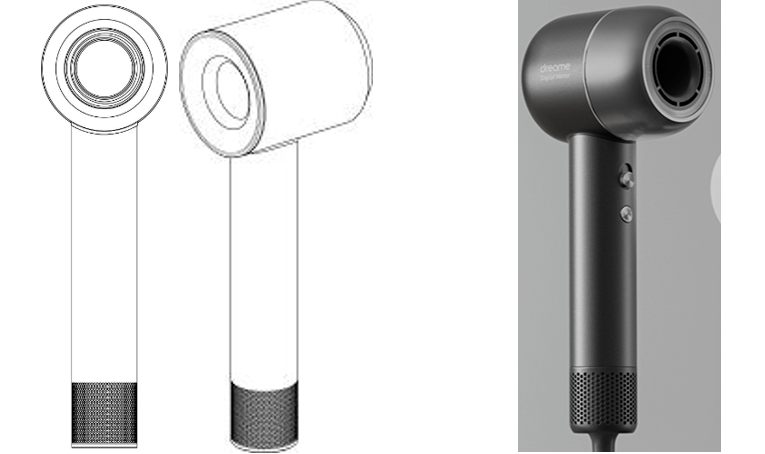 該案源于2019年,戴森公司認為追覓公司生產(chǎn)銷售的“吹風(fēng)機”侵害戴森公司“吹風(fēng)機”外觀設(shè)計專利權(quán),因此提起訴訟,請求法院判令追覓公司立即停止制造、銷售、許諾銷售落入該專利權(quán)保護范圍的吹風(fēng)機產(chǎn)品,銷毀用于制造被控侵權(quán)產(chǎn)品的設(shè)備、模具、工具及庫存被控侵權(quán)產(chǎn)品的成品、半成品,賠償戴森公司經(jīng)濟損失人民幣100萬元等。