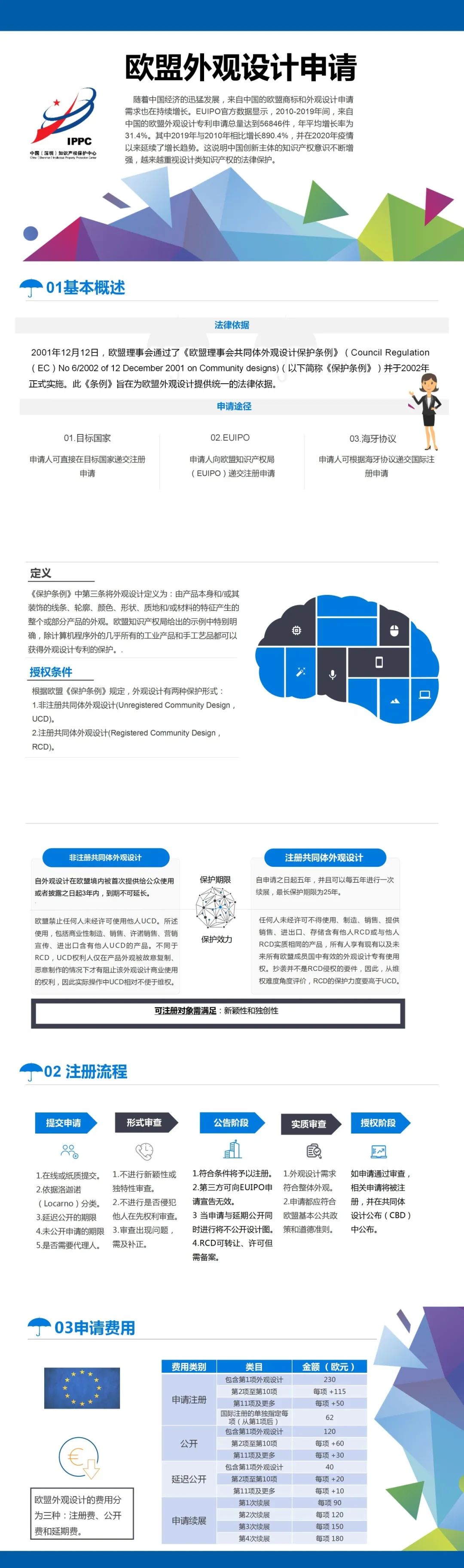 本報(bào)告主要從歐盟外觀設(shè)計(jì)概況、定義、授權(quán)條件、注冊程序以及費(fèi)用四個(gè)方面進(jìn)行分析,供有關(guān)政府部門及相關(guān)企業(yè)參考。
