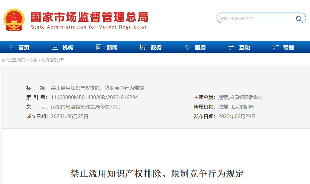 8月1日起施行!國(guó)家市場(chǎng)監(jiān)管總局發(fā)布《禁止濫用知識(shí)產(chǎn)權(quán)排除、限制競(jìng)爭(zhēng)行為規(guī)定》|附解讀