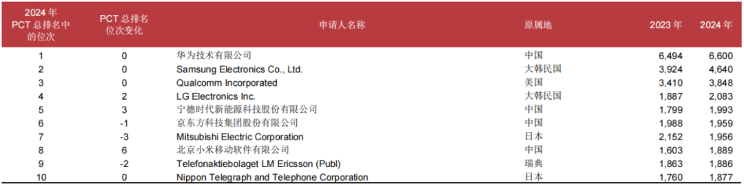 WIPO:2024年P(guān)CT專(zhuān)利申請(qǐng)總量第一的國(guó)家是中國(guó),申請(qǐng)人榜首為華為