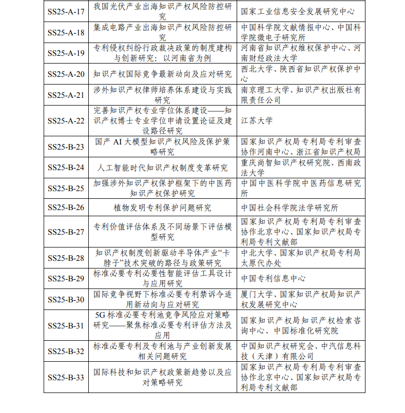 附件:2025年度國(guó)家知識(shí)產(chǎn)權(quán)局軟科學(xué)研究項(xiàng)目立項(xiàng)名單